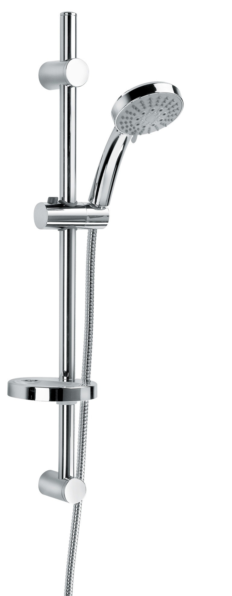 Sliding set, adjustable fixing, handspray with 5 jets, silver flexi hose, soap dish & wall elbow with non-return valve
